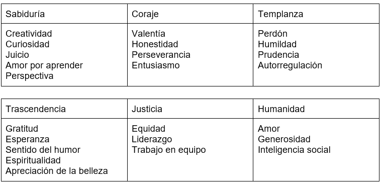 Las fortalezas de las que hemos estado hablando, fueron desarrolladas por el padre de la psicología positiva, Martin Seligman. Estas fortalezas son: